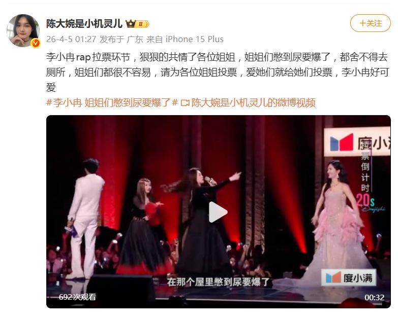 然而,笑声背后,观众更多读到的是勇气与真实。在一片“姐姐们都不容易”的共情声中,李小冉的即兴发言不仅是为了拉票,更像是一次为集体困境的公开发声。她敢于用如此直白的方式,揭露行业内部习以为常的潜规则——为了流程“顺利”而牺牲艺人基本生理需求的安排。这种“真实不做作”的莽撞,赢得了大量赞赏。