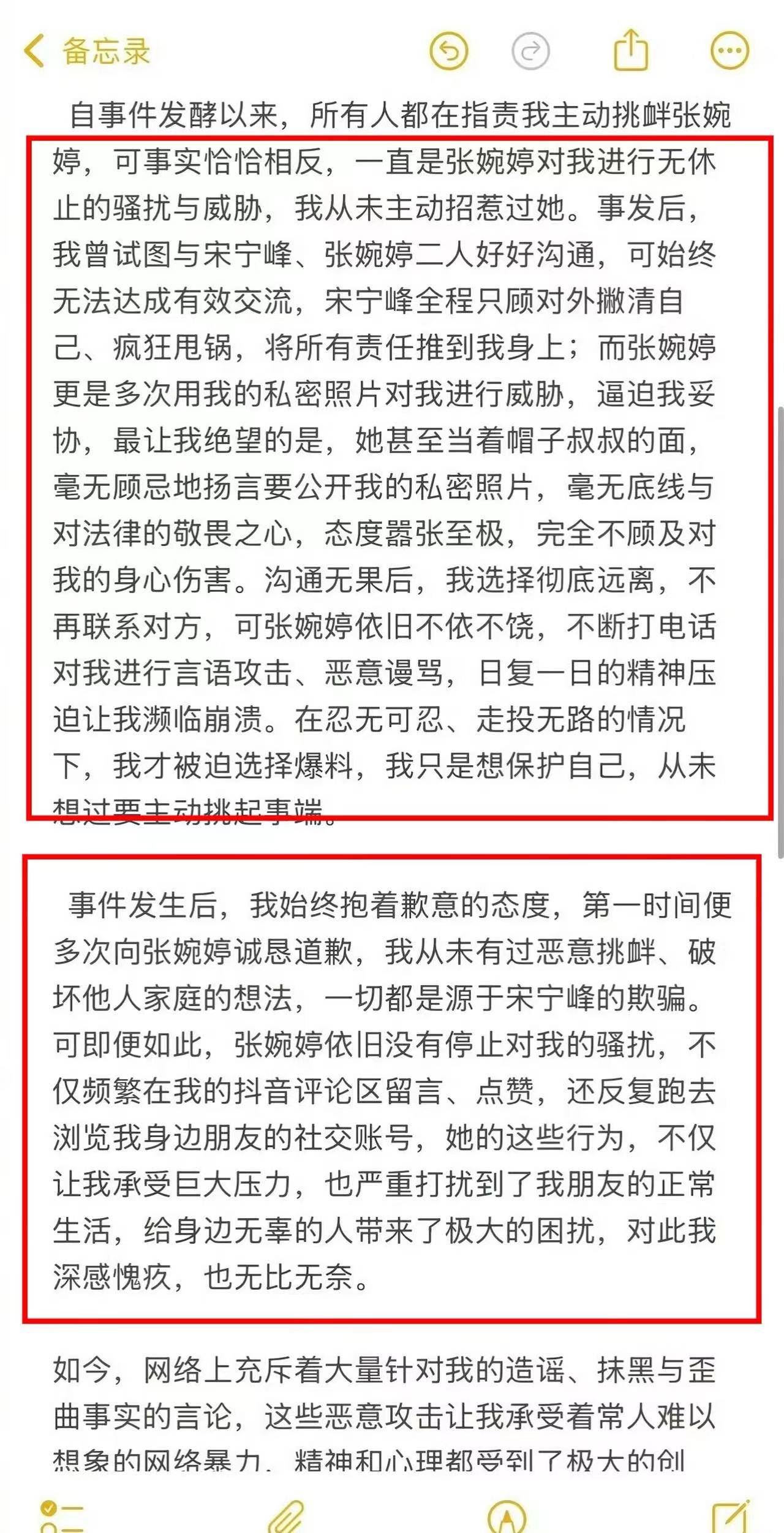 相比之下,宋宁峰作为公众人物,仍有事业需要维护,张婉婷可能担心正面撕破脸会引发更大危机,甚至影响家庭经济来源。于是她选择了一种看似“强势”实则被动的方式: