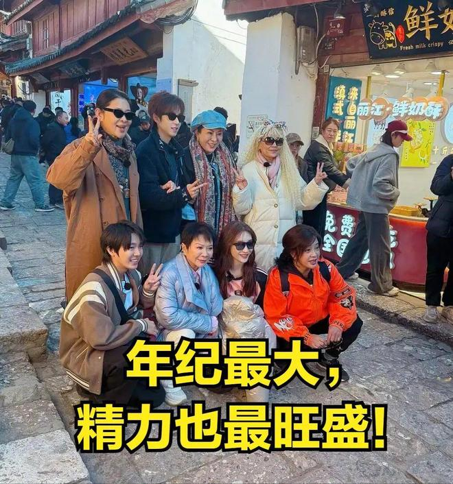 这个团队里面,虽然有两个小年轻帮忙拉行李,各种照顾。但是晓庆奶是年纪最大,但是也是最不需要照顾的一个人。
