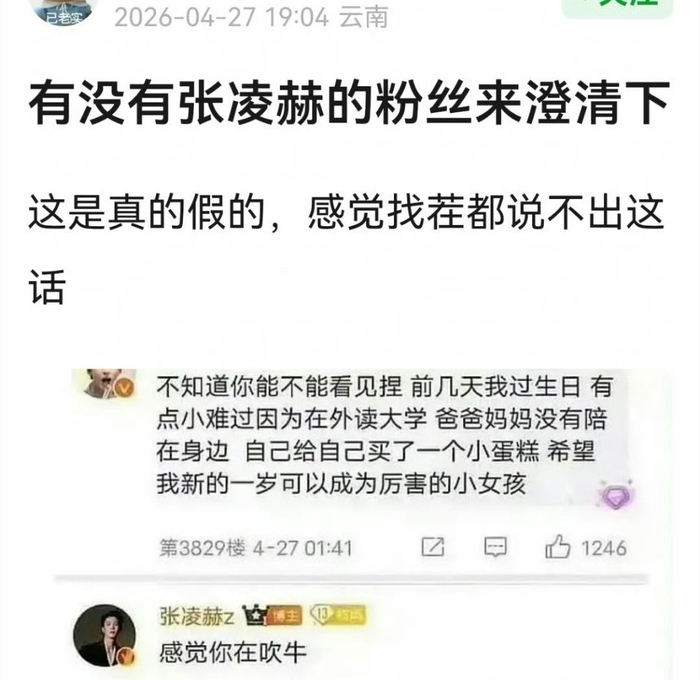 张凌赫曾经翻牌即将过生日的粉丝又被审判了,后来张凌赫回了句生日快乐,怎么评?