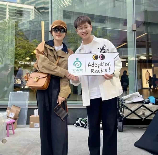 4月20日,孙俪穿了一身卡其色休闲套装,背着价值上万的奢侈品包包,现身了上海浦东某领养集市,参与救助流浪动物的活动。