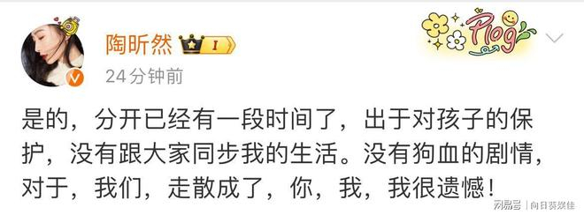 离婚已发生“一段时间”,但未公开具体时间。陶昕然强调无第三者等“狗血”情节,仅因感情淡化遗憾分开。以保护女儿为优先,此前未主动公开婚姻状态变动。
