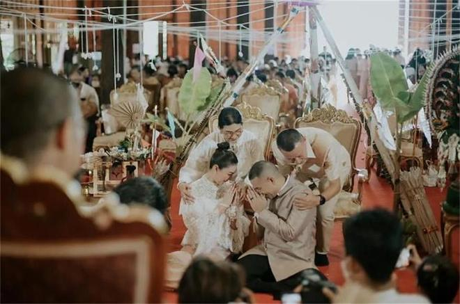 婚礼仪式结束后,Pancake和Mee一起跪拜双方父母,感谢他们的养育之恩。