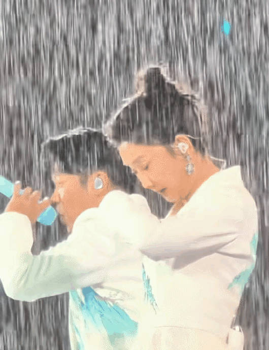 这一举动被网友考古为“蓄谋已久的报复”。2018年某次雨中演出,玲花曾因情绪高涨率先扔伞,曾毅虽困惑仍秒速跟随;此次角色反转,被调侃为“君子报仇十年不晚”。两人淋雨状态反差强烈:曾毅的“房檐头”厚刘海有效挡雨,脸部妆容无损;玲花则被浇得睁不开眼,假睫毛险脱落,妆容全花。