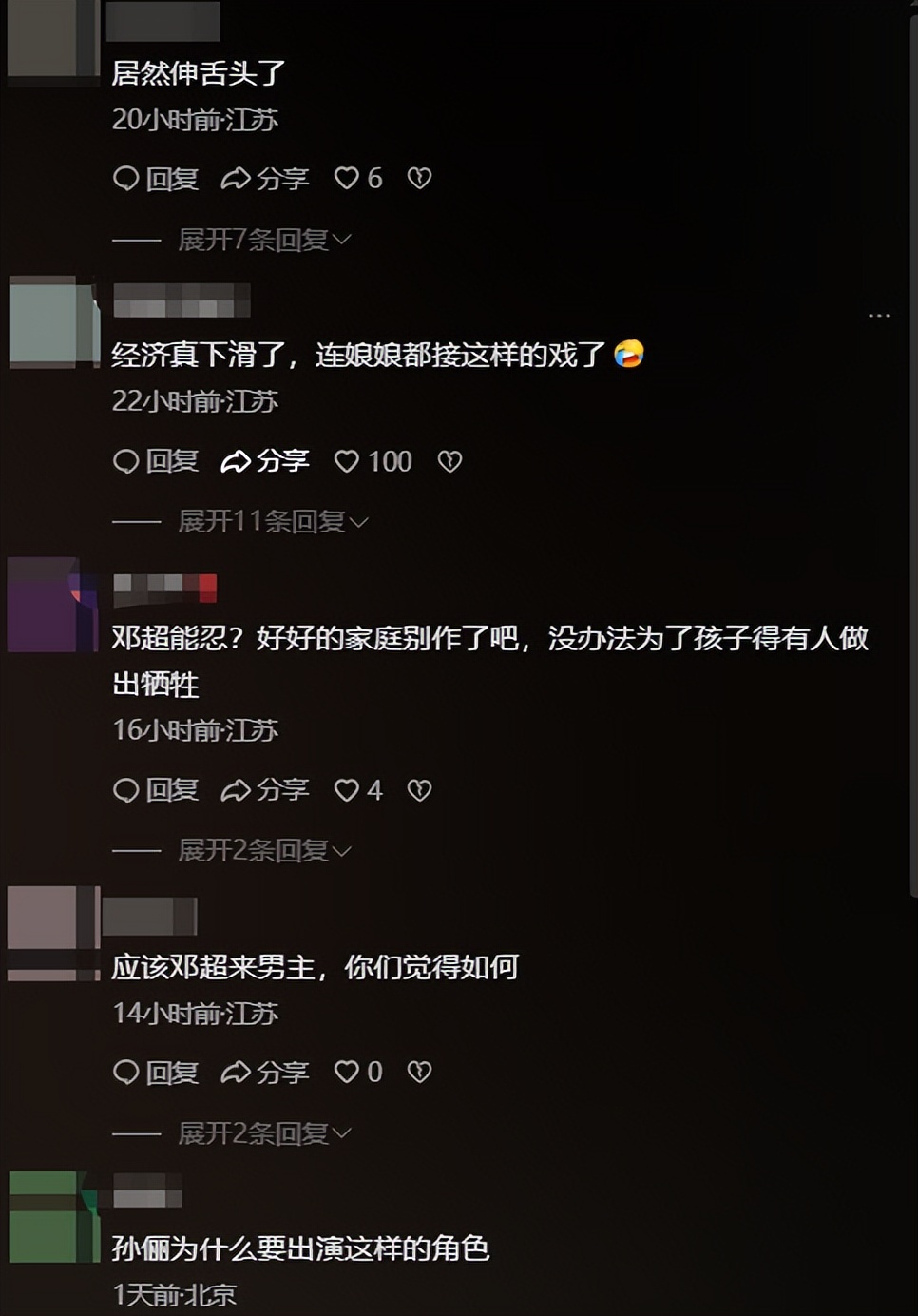有人觉得中年演员不必依靠此类镜头制造话题,也有人调侃她的转变太过突然,甚至将话题关联到她的家庭生活,让这场争议持续升温。