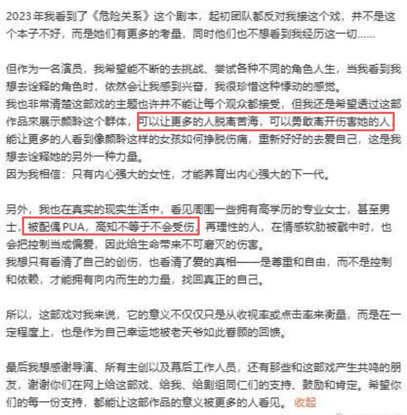 她接演这部作品的初衷,是希望通过角色经历,让更多人关注到情感操控这类社会问题,也想为自己的表演生涯拓宽更多可能。