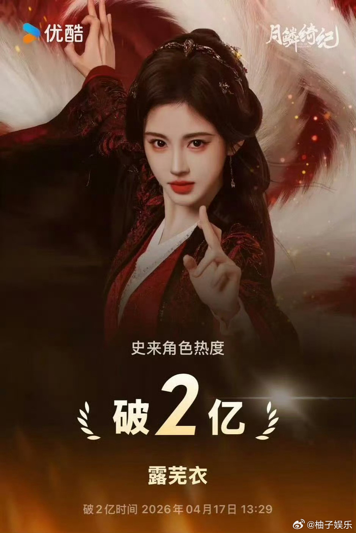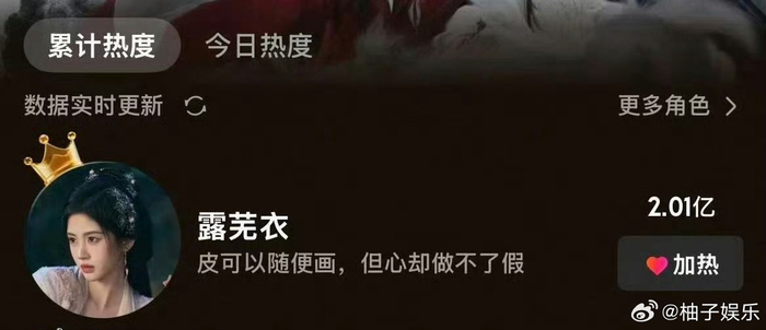 鞠婧祎露芜衣角色热度破2亿了,优酷首位破2亿热度角色,恭喜鞠婧祎,露芜衣伟大!