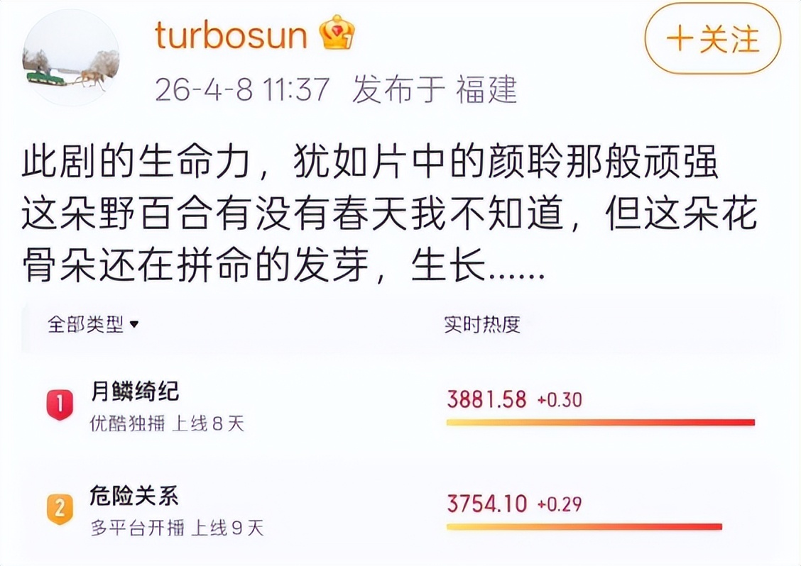 显而易见,这部剧不是大爆款,孙俪本人发在网上的关注度截图,就很能说明问题,她自己也知道这部剧收视率不高。