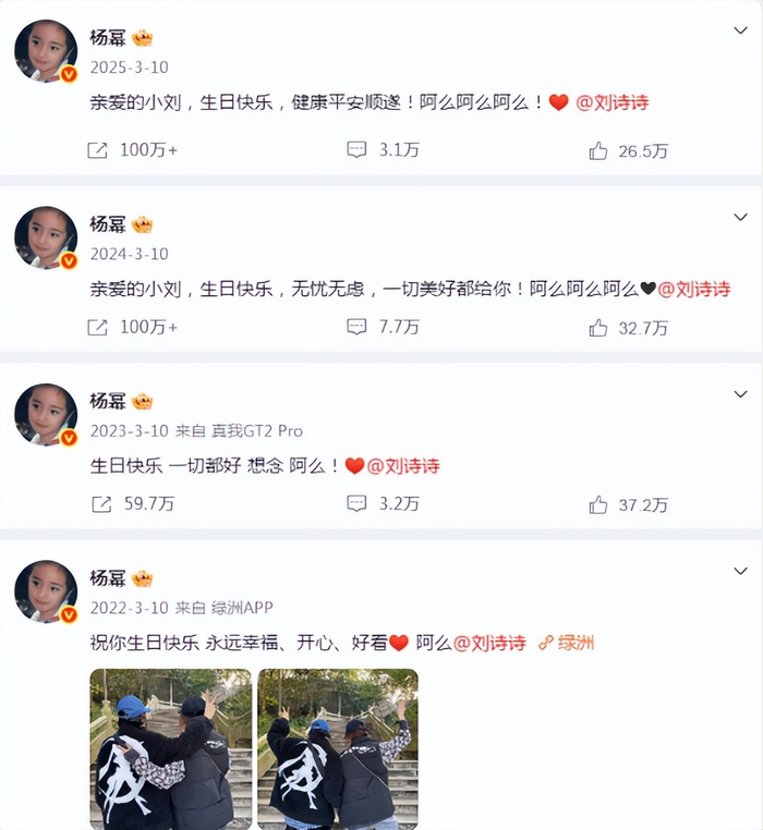 **吃瓜简评:杨幂为刘诗诗送生日祝福,暗藏玄机?**,最近杨幂又为好友刘诗诗送上了生日祝福,这已经是她连续第五年这样做了,看来杨幂真的很喜欢送生日祝福,连续五年都没忘,真是个“生日小白脸”啊!作为一个“律师姐”,送生日祝福也太显得不够正式了吧?估计背后有没有什么玄机呢?,说到杨幂和刘诗诗的友情,真的挺有意思的,两人从2009年的《仙剑三》开始认识,戏外互称“妹妹”“嫂子”,感情可是深深的,2011年后因为事业路径不一样,互动减少了,但自2019年起,两人又开始频繁互动,刘诗诗还说她们“性格互补,一见钟情”,看来,两人的友情就像一颗种子,一旦种下,就一直在心里生根发芽。,2026年的电影《惊蛰无声》,两人终于在荧幕上相遇了,这是自2009年的《仙剑三》“雪见龙葵”之后,时隔17年的影视重逢,张艺谋导演的国安题材电影,两人饰演的角色一定有很多深意,想必他们在合作中又完美融合了那种“妹妹嫂子”的默契。,杨幂为刘诗诗送生日祝福,真的很贴心啊!不管是暗生日的小白脸,还是律师姐的身份,都让人觉得她一针见血,刘诗诗也曾说过,她们性格互补,一见钟情,这种友情果然可贵。,杨幂和刘诗诗的友情就像春天的溪流,流淌得深沉而持久,虽然有时候会因为事业和生活的原因互动减少,但只要一见面就会像当初那样,自然而然地成为对方的“妹妹”“嫂子”,这种真挚的友情,真的是网友们心目中的一颗温暖小岛。**吃瓜简评:杨幂和刘诗诗的“姐妹”之缘**,说到生日祝福,这可是每个人一年都要过一次的“盛宴”,而对于杨幂来说,每年的三月十日都是一年中最特别的日子,因为,这一天不仅是她的好友刘诗诗的生日,更是杨幂连续五年为刘诗诗送上的生日祝福的日子,这个细节让人感受到,两位“姐妹”的友情有多么的牢固和长久。,---,友情的开始,总是让人感到温馨,杨幂和刘诗诗的友情可以追溯到2009年的《仙剑三》,那时候,两人在剧组里相识,相处,彼此都给予了很大的支持和鼓励,戏外,他们还互相称呼“妹妹”和“嫂子”,这种亲密的称呼让人感受到,两人的感情远不止于表面的合作,刘诗诗曾回忆起,两人性格互补,一见钟情,这种“一见钟情”的感觉,显然在他们的友情中占据了重要的一席之地。,---,2011年之后,两人的事业发展方向开始出现差异,工作中的互动也逐渐减少,命运总是有时候会让人重新遇见旧的朋友,2019年,两人开始了友情的修复,张艺谋的电影《惊蛰无声》让他们在荧幕上再次携手,虽然这是他们17年后的影视重逢,但看起来,两人的友情从未因时间的流逝而变得冷淡,相反,经历了风风雨雨后的重逢,反而让他们更加珍惜彼此的陪伴。,---,生日的喜悦,总是让人心情愉悦,而杨幂为刘诗诗送上的每一份生日祝福,都充满了真诚和关怀,无论是个人发文还是工作室转发,都让人感受到,两位“姐妹”之间的感情是多么的深厚,刘诗诗的生日贴文中,杨幂不仅送上了祝福,还特意提到“跟姐@杨幂一起”,这句话充满了温情和亲密感。,---,从“妹妹”“嫂子”到现实生活中的亲密互动,再到荧幕上的合作,杨幂和刘诗诗的友情经历了多年的洗礼,却始终保持着初见那一刻的那份温暖和一见钟情的感觉,这种友情,不仅让人感动,更让人看到,真正的友情是多么的珍贵和值得珍惜,无论是生日的祝福,还是荧幕上的携手,两人的每一次互动都让人感受到,友情的美好和永恒。
