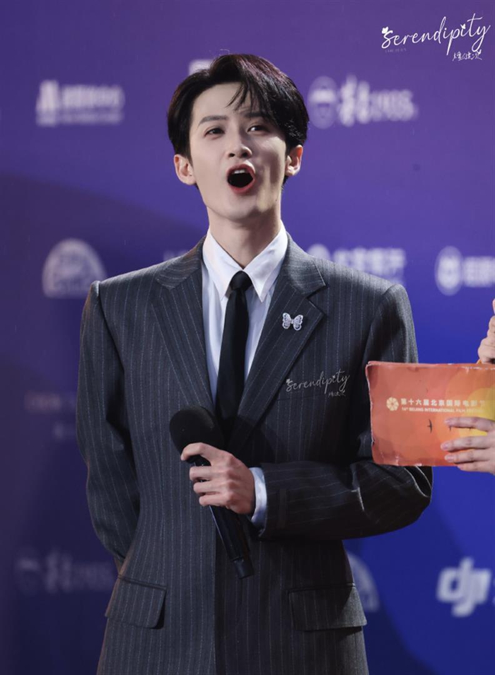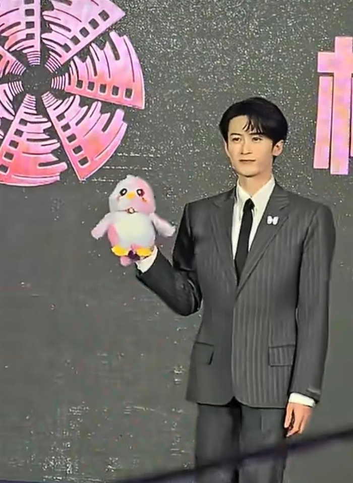 2026年4月16日,第十六届北京国际电影节正式开幕。 当晚的红毯星光熠熠,但所有人的目光很快被一个人吸引——本届电影节的宣传推广大使檀健次。 他穿了一身笔挺的灰色西装,造型帅气利落,可手里却拿着个与他一身正装格格不入的东西:一个彩色的、会转的小风车。