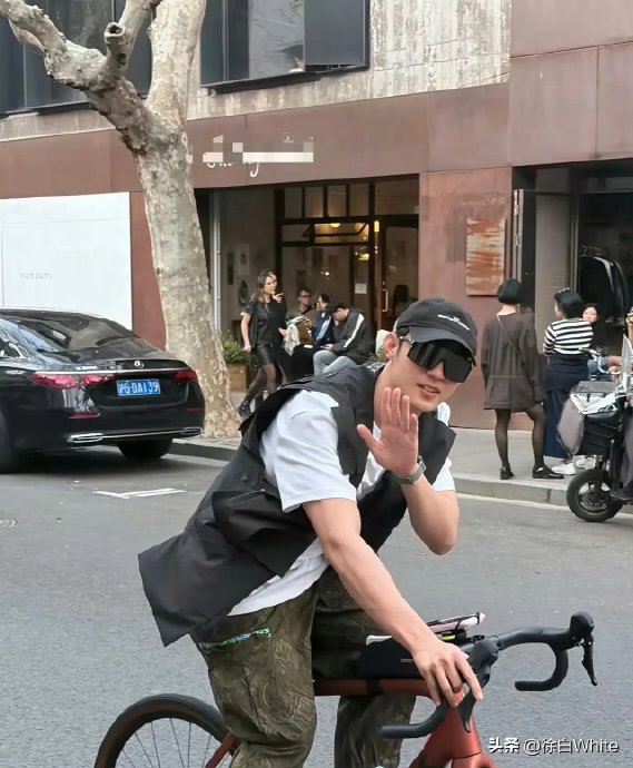 2026年4月5日至6日,上海武康路、安福路等梧桐区成为网友偶遇黄景瑜的“高频地标”。他被目击从早至晚骑行,单日至少三次现身街头:白天身着白T恤外搭黑色工装马甲,配棒球帽与迷彩长裤;傍晚则换上休闲衬衫,在暖黄路灯下穿行街巷。其187cm的挺拔身形在骑行中形成强烈视觉焦点,而面对路人镜头时主动摘帽微笑、减速挥手的亲和态度,更被粉丝调侃为“0.5倍速温柔挥手”。这种毫无保镖随行、自然融入市井生活的松弛感,让他被网友冠以“上海街头固定NPC”的称号。
