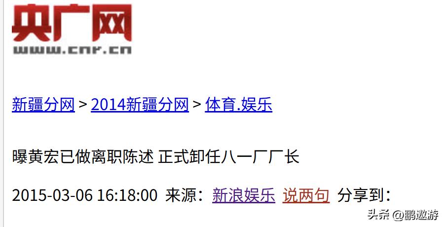 央广网:(曝黄宏已做离职陈述正式卸任八一厂厂长2015.03.06)