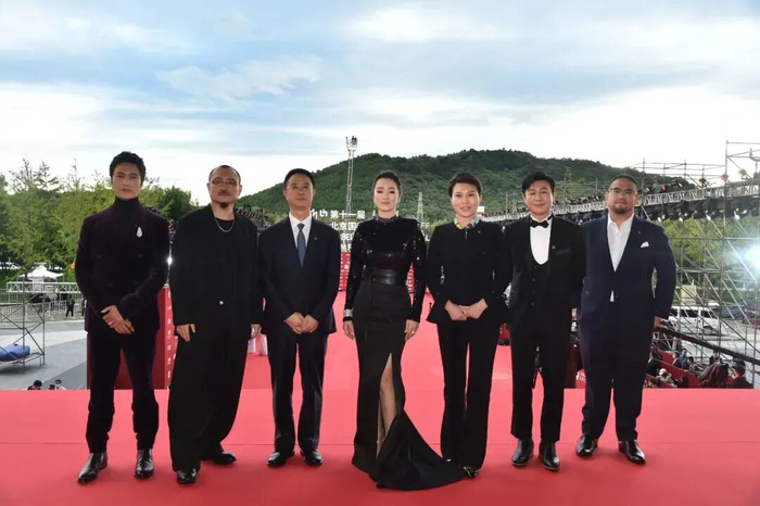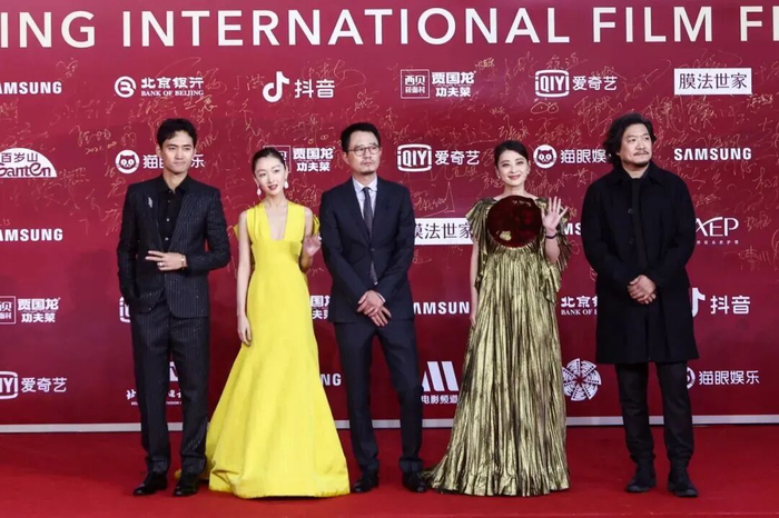 “天坛奖”国际评奖委员会主席巩俐与评奖委员会成员陈坤、陈正道、乌尔善、张颂文首先亮相,拉开了本届北影节红毯仪式的帷幕。