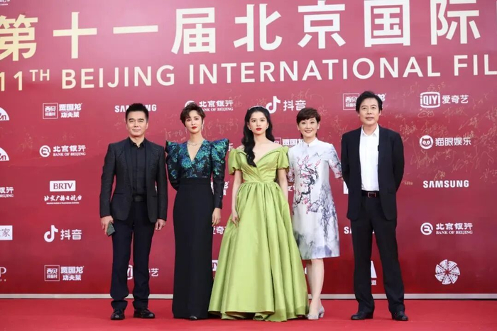 另外还有《谍狼之变色龙》《不速来客》《东北人都是活雷锋》《爷们信条》《丛林迷雾》《大漠飞天》《同学们好》等剧组也一一亮相本届北影节红毯。