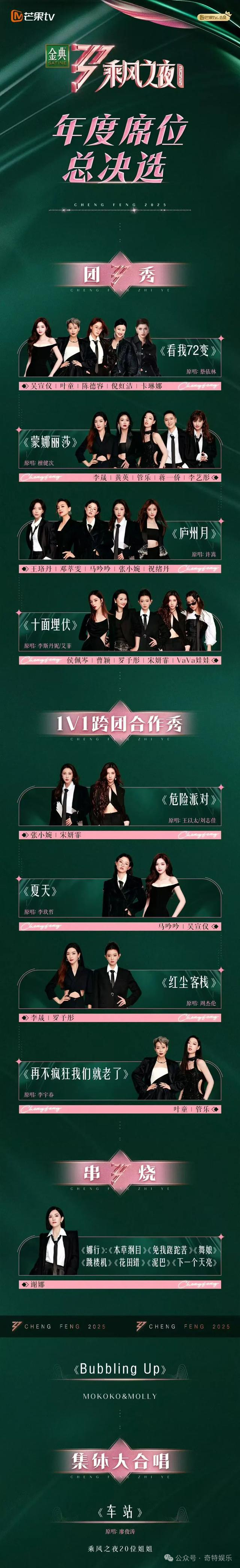 总之,今晚的《乘风2025》成团夜绝对是一场不容错过的盛会。无论你是怀旧派还是追新族,相信这场晚会都能满足你的期待。so,今晚我们不见不散哦!