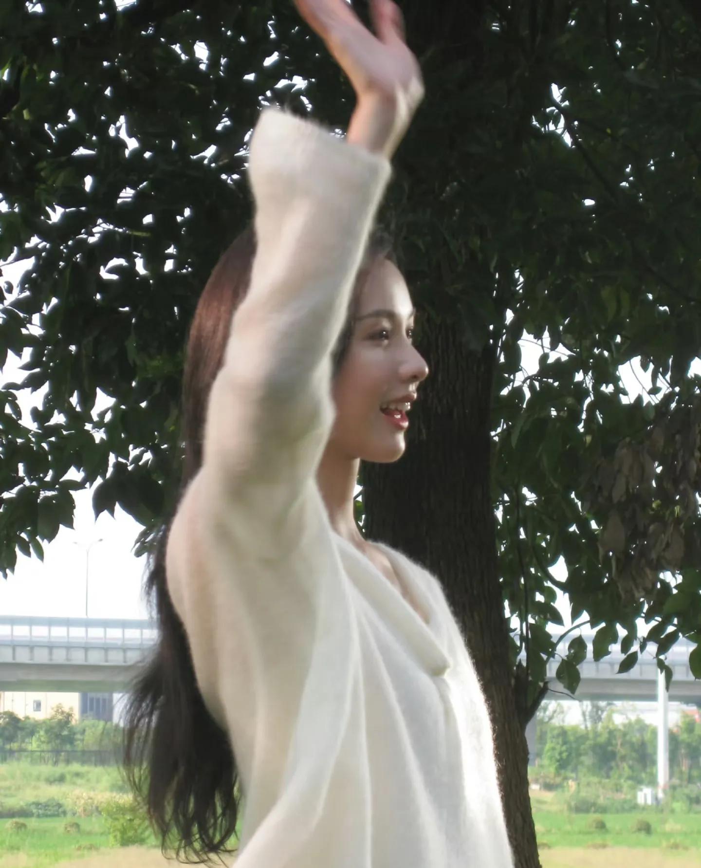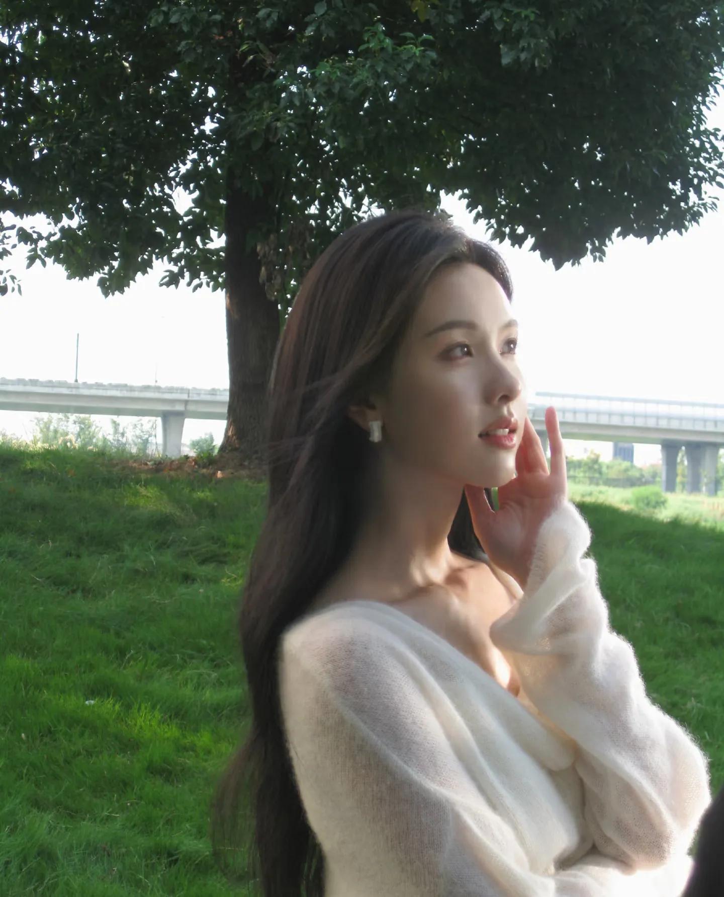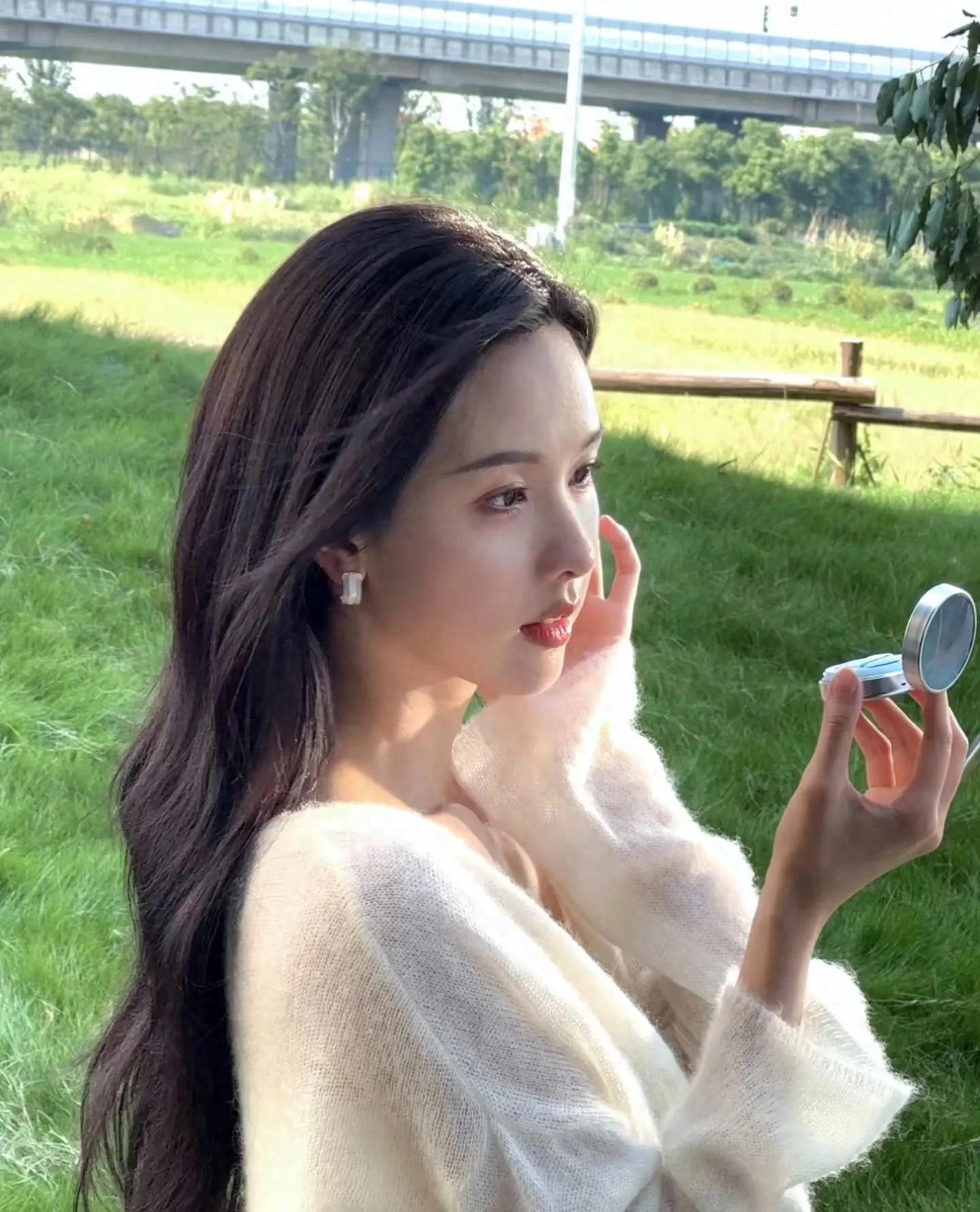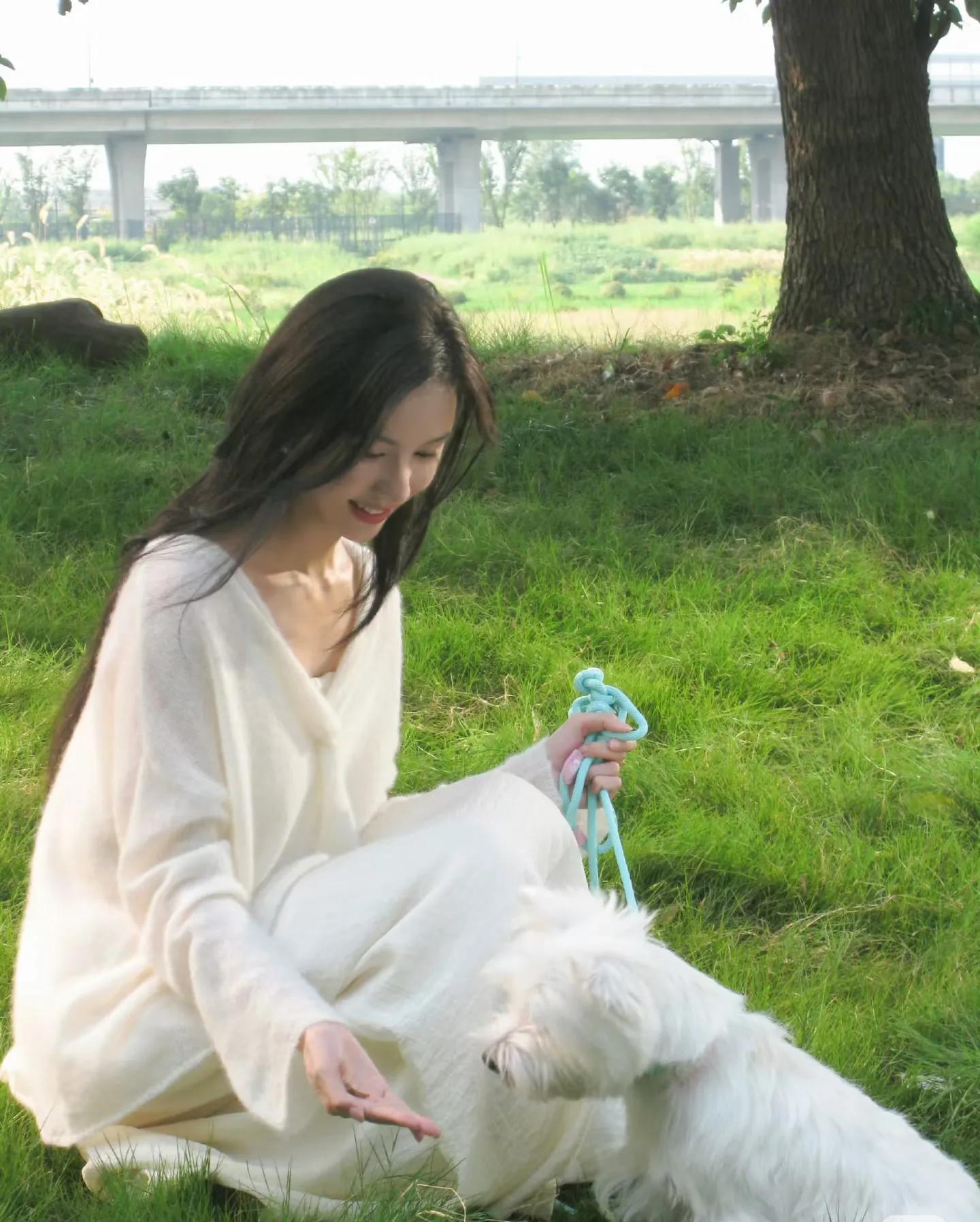 没有繁复装饰,没有堆砌大牌,仅靠简约单品就将清冷温柔的气质拉满。在草坪上与小狗互动、补妆时的抓拍,每一帧都像画报大片。