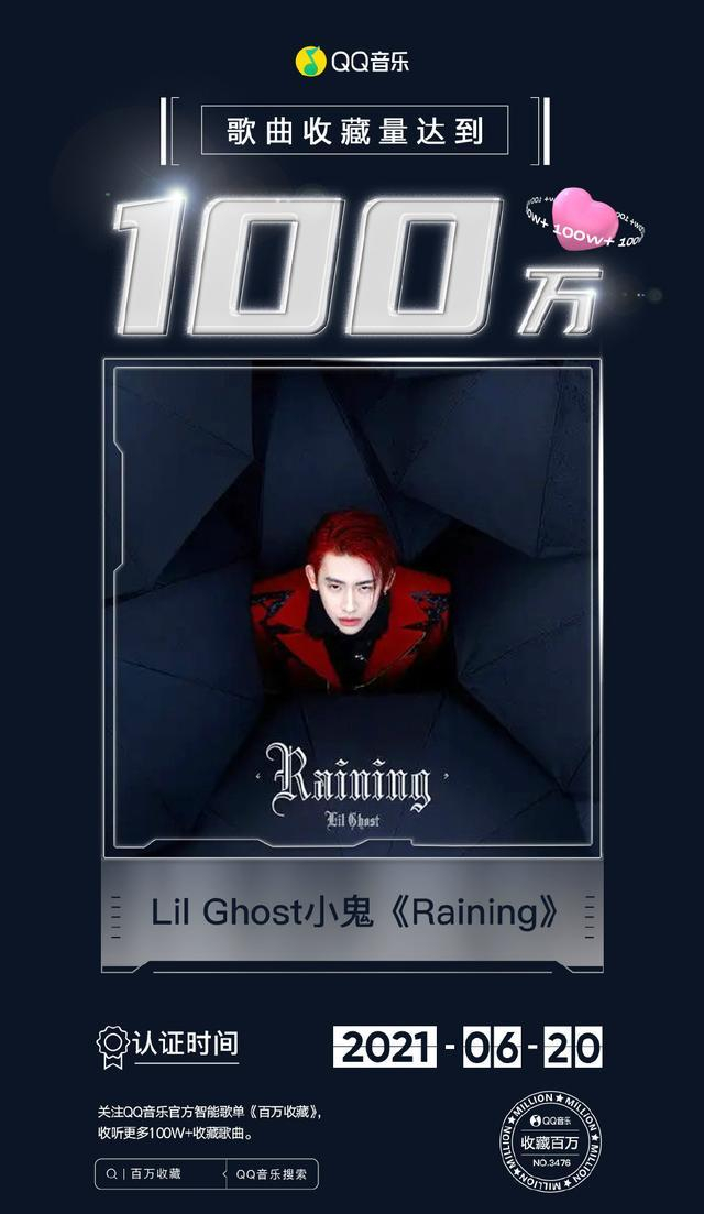 昨日,“QQ音乐官方歌单”官微发博宣布小鬼《Raining》达成“百万收藏”成就,恭喜琳琳收藏破百万的歌曲再添一首!