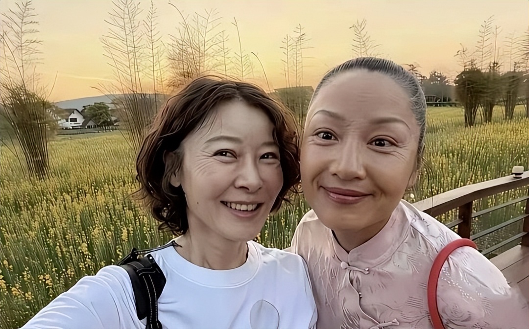 今年春节又和瞿颖去了清迈旅拍,素颜出镜,眼角的皱纹自然舒展,笑得比谁都开心。