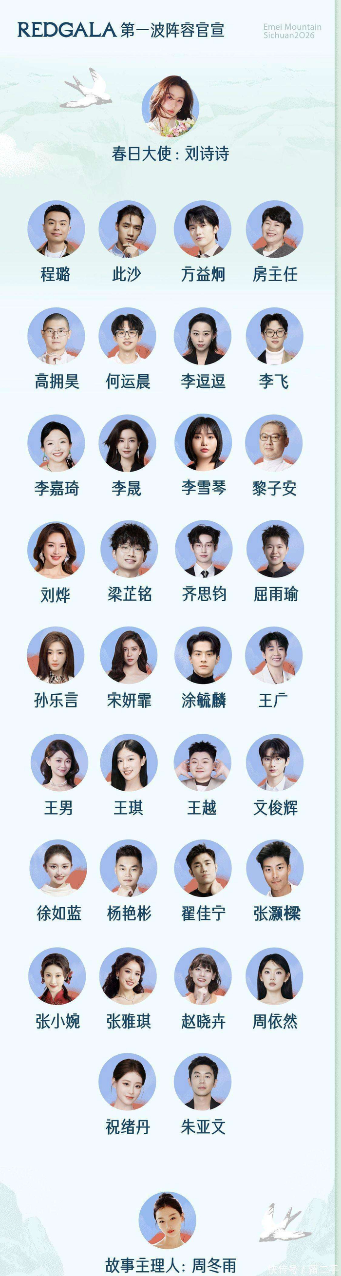 在REDGALA的故事幻城里,小红书精心构建了一座好作品互动展,那些曾在屏幕上打动你心弦的经典瞬间,将被赋予全新生命。你可以与心爱的角色肩并肩行走,向NPC发问触发隐藏彩蛋,甚至亲手改写那些曾让你心生遗憾的剧情结局。《仙剑奇侠传三》《唐朝诡事录》《永夜星河》《喜人奇妙夜2》《捕风捉影》等多部家喻户晓的影视综艺IP,将突破次元壁,在故事幻城中重新绽放光彩。同时,小红书也揭晓了REDGALA的首批嘉宾阵容——春日大使刘诗诗、故事主理人成龙、周冬雨等明星艺人,将亲临峨眉山,在各自的故事场景中化身角色,与粉丝零距离互动。