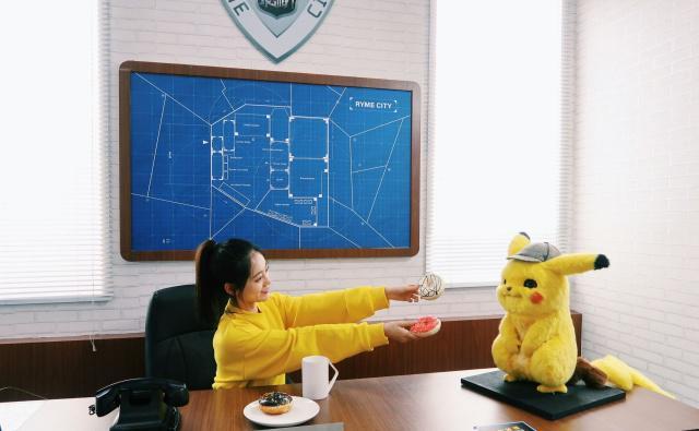 看祝绪丹和“皮卡丘”的合影,后面又各种类似商场或者电影院的背景,还有电影《大侦探皮卡丘》的海报,让人猜测她是不是去看电影了?