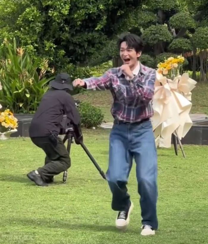 他在节目里扮演的是销售,路透里几个撒欢式的动作,就能感受到他玩的有多么开心。