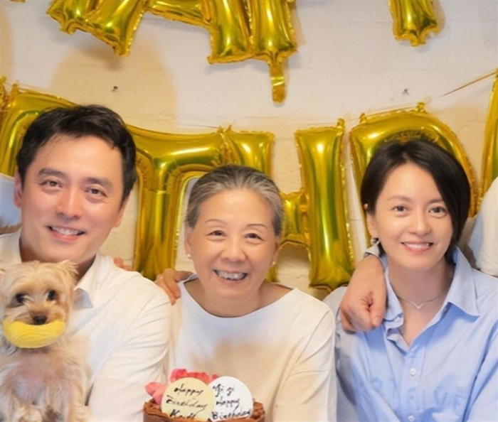 梁妈妈也出镜了,坐在中间,双手捧着蛋糕,气色红润,笑得慈祥。 妈妈两边,一边是女儿,一边是儿子。 仔细看照片,有只手揽着梁咏琪的肩膀,弟弟身旁也站着位女性。 网友猜,那是她西班牙老公和弟媳。