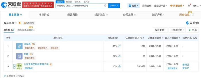 这个转换器在2020年11月迎来了一次关键升级。爱奇艺在这一年战略入股了众星时代,虽然持股10%的比例不算太高,但意义远超财务投资本身。这更像是一张“入场券”和一份“默契”:平台需要稳定、配合度高的演员来填充庞大的内容生产线,而众星时代则获得了优先参与爱奇艺重点项目选角的宝贵机会。