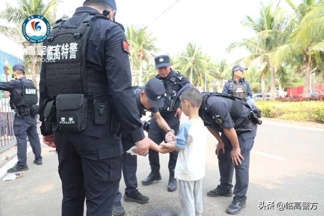 执勤期间,特警队员发现一名小男孩独自哭喊,疑似与家人走失,立刻上前轻声安抚,稳定孩子情绪,由于男孩年龄尚小,无法清晰说出姓名、住址及父母联系方式,随即,特警队员将孩子送至临高角警务室安置,恰好遇见前来报警求助的孩子母亲,最终帮助母子平安团聚。