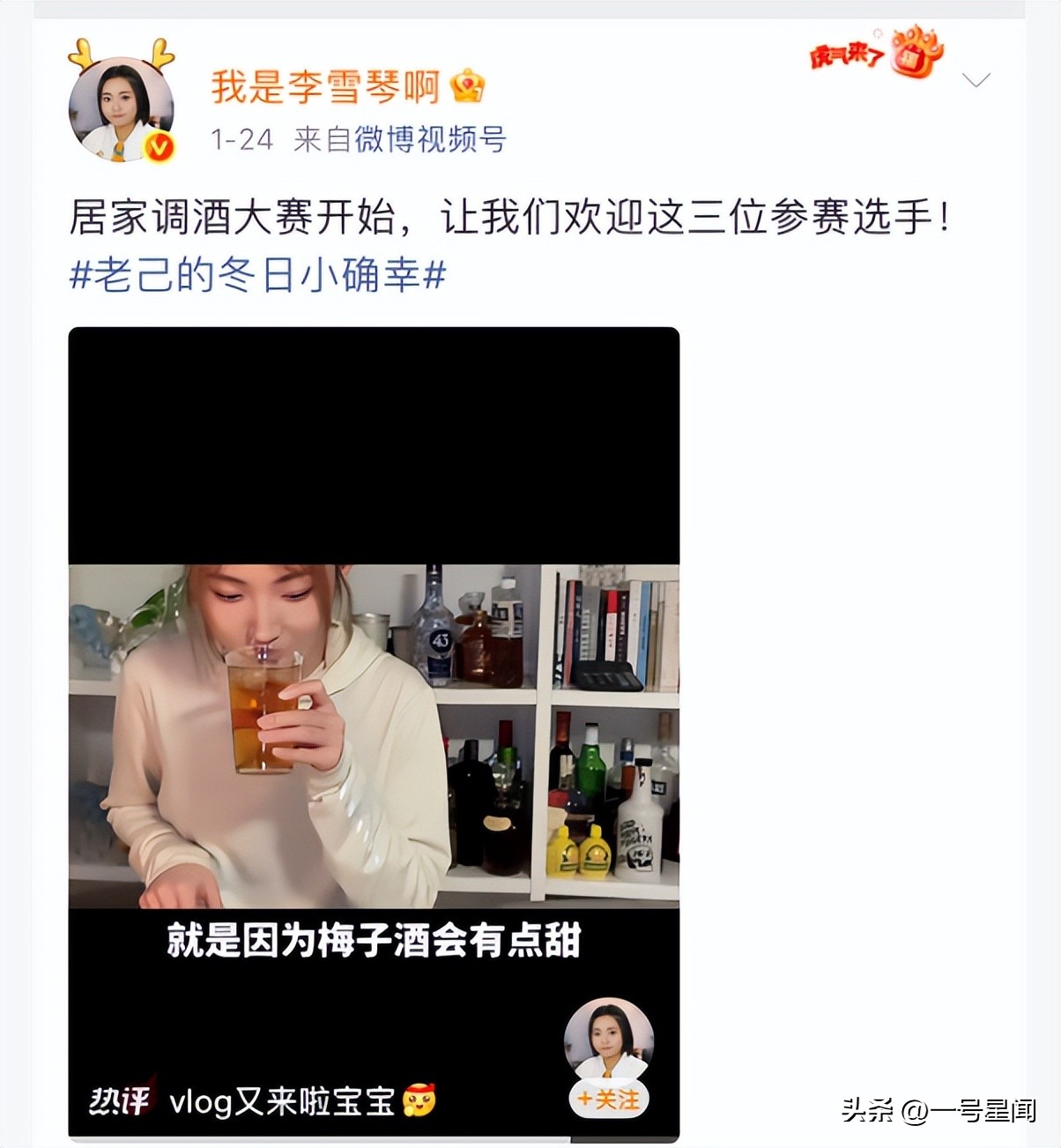 近日,李女士在社交媒体上,更新了视频,内容是,她和朋友在家里面,举行了一个“居家调酒比赛”。