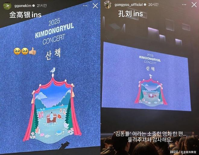 其实,孔刘早在11月9日就在个人IG快拍上给这场演唱会打过广告,称其为“珍贵的电影”,早早暴露了自己是金东律歌迷的身份。金东律本次名为《散步》的演唱会本身规模盛大,7场动员7万人,但因为这三位重磅观众的加持,被赋予了远超音乐本身的意义。
