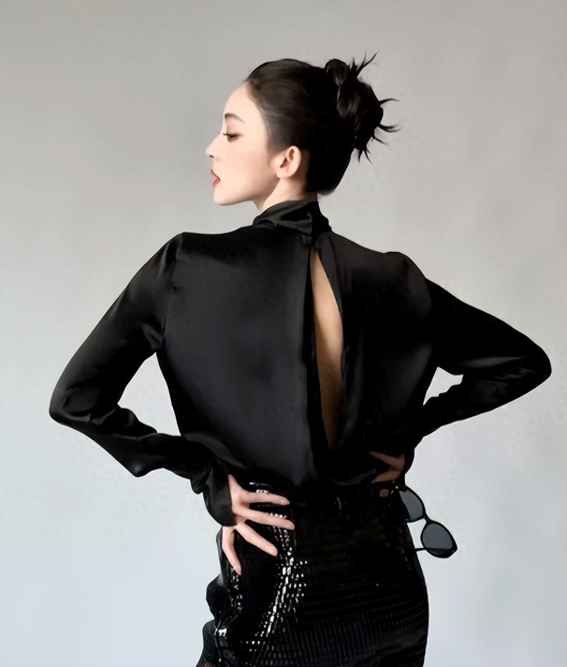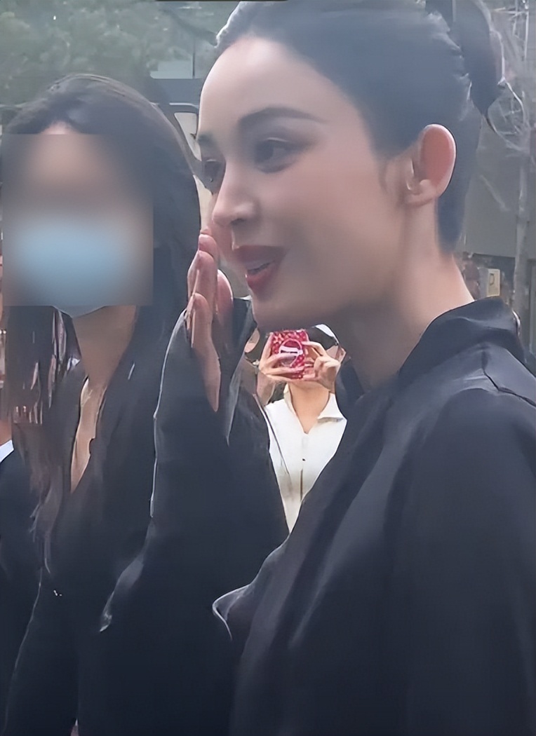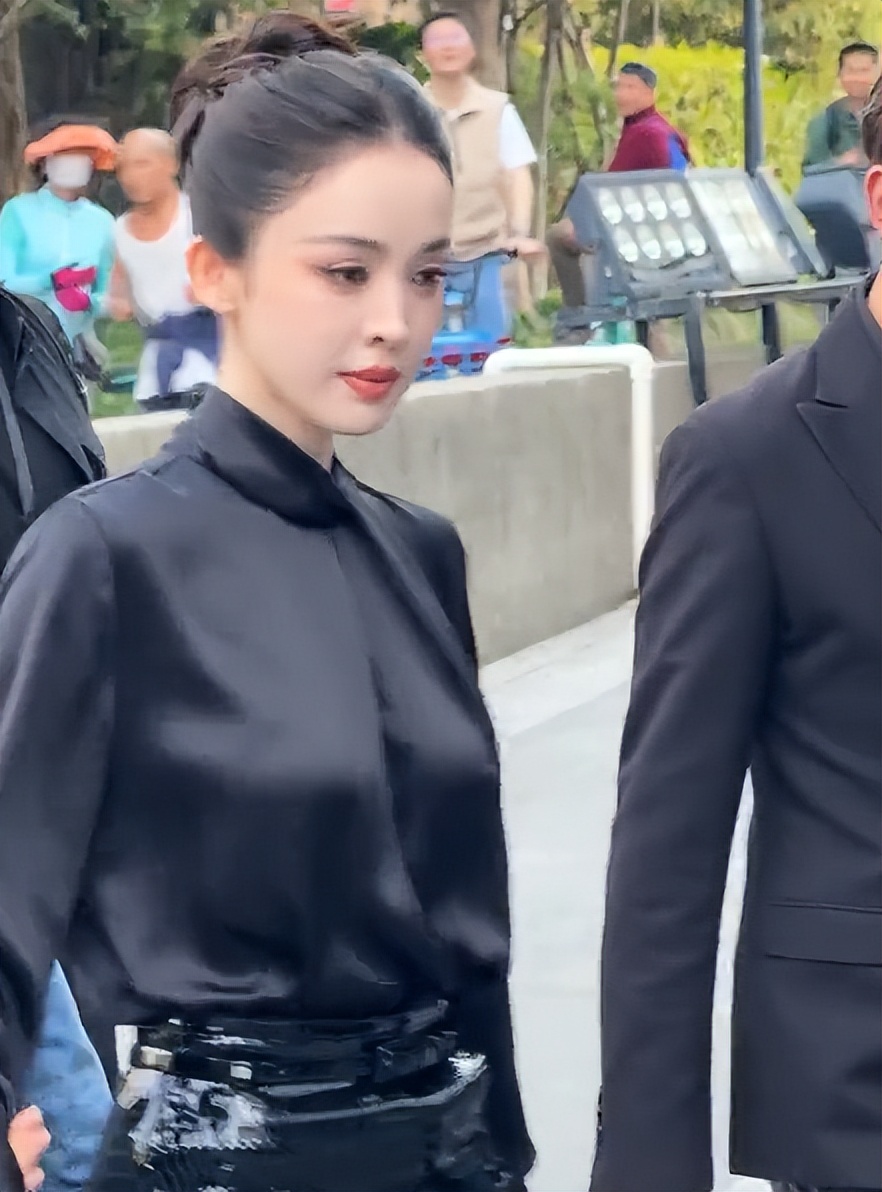 偶遇的时候,娜扎刚从车上下来,穿着一身纯黑修身西装,严严实实全裹着,却一点都不显得沉闷。