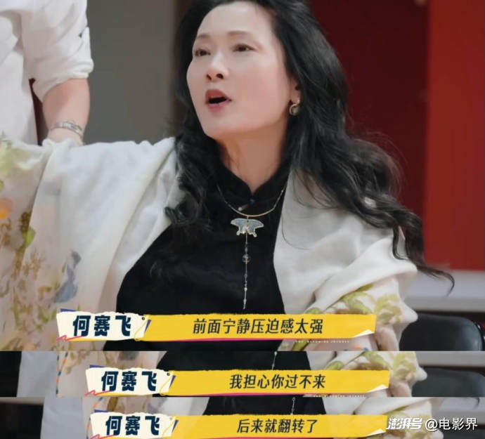 节目中,张柏芝在TVB排练室里看到《金枝欲孽》海报后透露这是自己最爱的剧集,刘嘉玲就顺势提议其与宁静现场演绎皇后与如妃的经典对峙戏码。面对宁静饰演的皇后展现出的巨大的压迫感,张柏芝仍稳定输出层次分明的台词,何赛飞说:“有几句话说得特别好,特别有力度。”