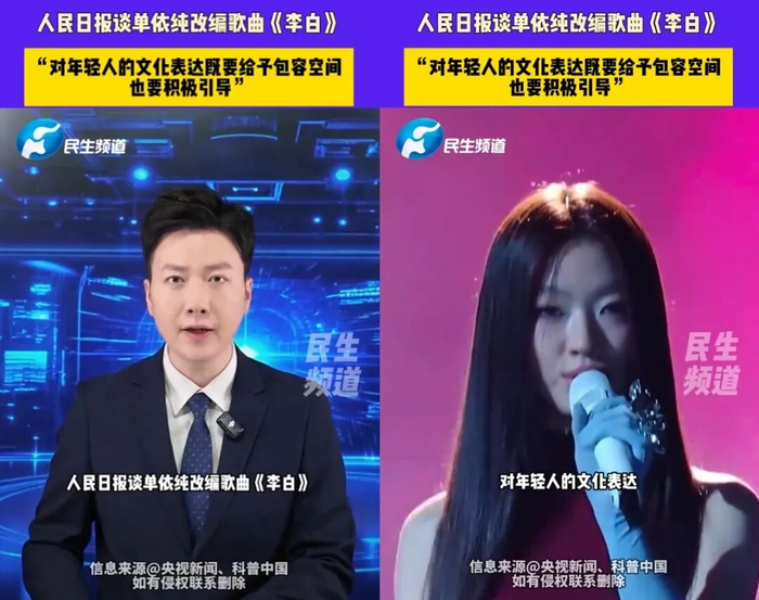 总之结果是单依纯和这版《李白》确实火了,官媒下场定调,作为前辈的李荣浩不方便说什么,不然会显得有些小气。同时也能理解《歌手2025》搞节目效果,所以他才会“我保你完全,顺利登上神坛。”