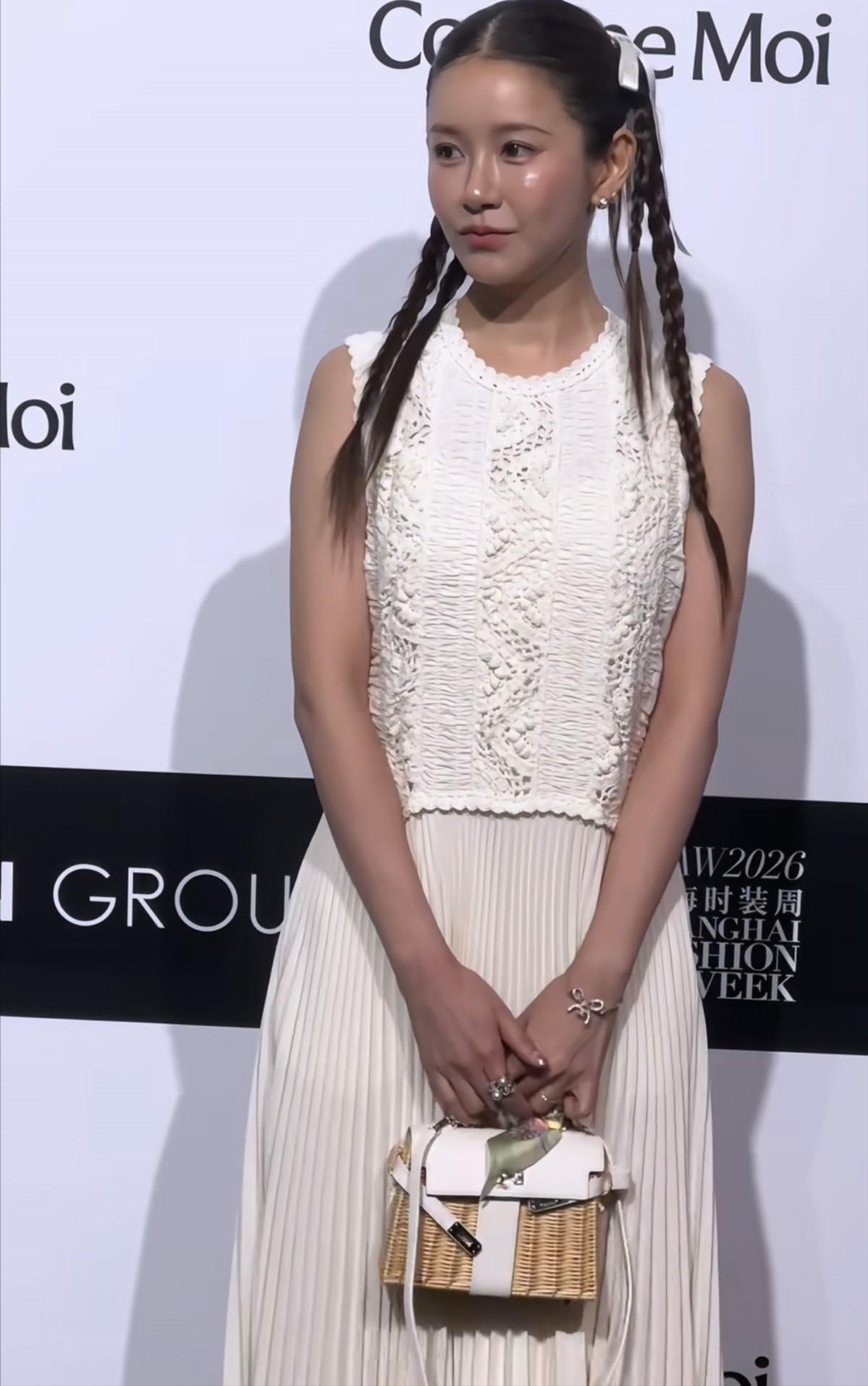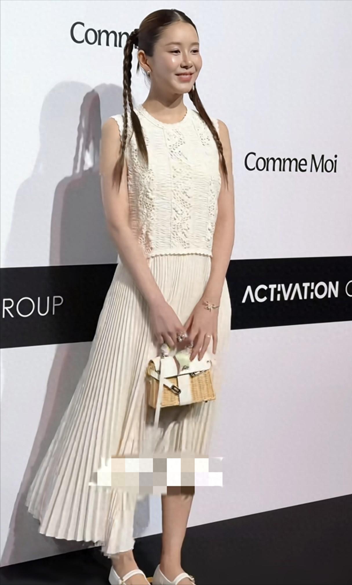 她当天的穿搭走清新路线,颜色搭配也算清爽,身材管理得很好,腰线和腿型都没什么可挑剔的地方。