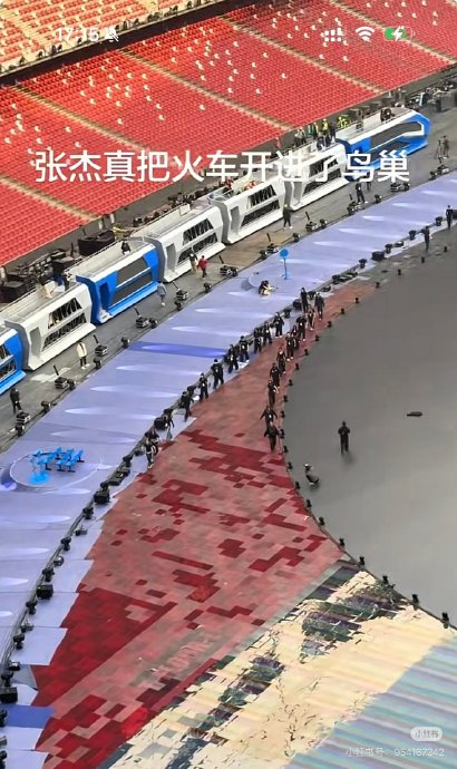 拆除传统内场座位,采用360°四面台设计。主舞台通铺鸟巢内场(超10000㎡),中心设70米直径转台;列车轨道环绕内场形成闭环,确保各看台观众无视觉死角。