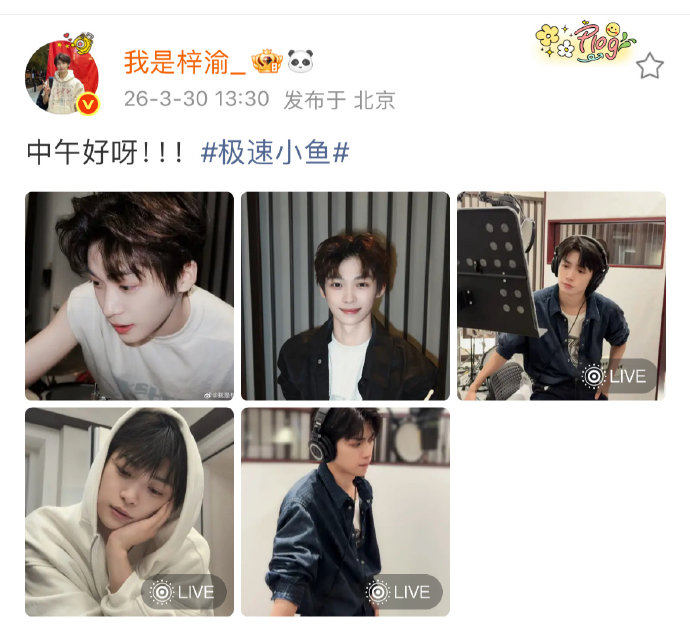 梓渝今日(2026年3月30日)通过微博话题 #梓渝课间休息live# 分享学习动态,引发粉丝热议,其上课间隙的随拍及工作进展成为关注焦点。
