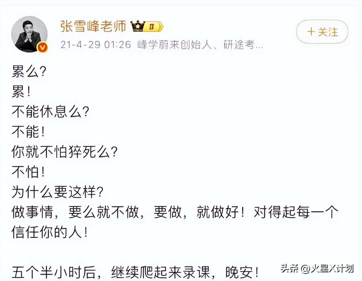 如此高压下,张雪峰并没有放弃运动,但是却忘记了休息!