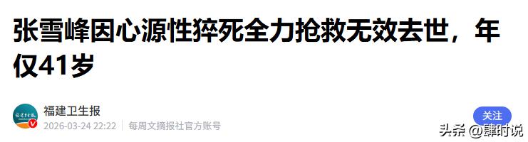 福建卫生报 2026-03-24——张雪峰因心源性猝死全力抢救无效去世,年仅41岁