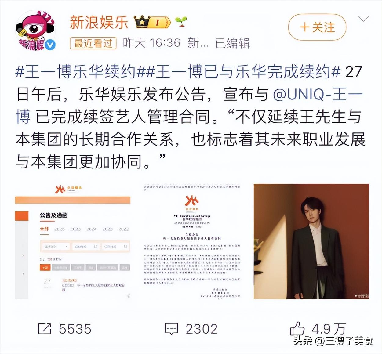 然而,大家是真的想太多了,3月27日王一博和乐华的续约流程已经走完了,意味着他将继续在公司待着,而粉丝成了“小丑”。