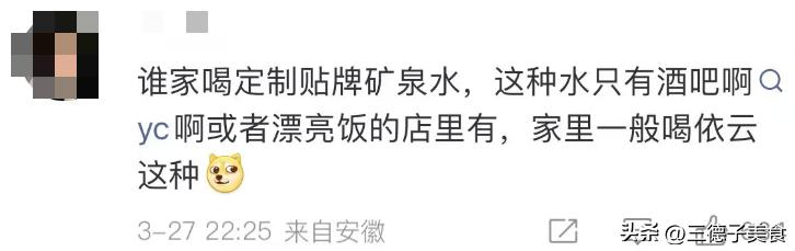 有人信,自然也有人不信,不信的理由很简单,因为视频中出现了贴牌矿泉水,而这种水一般只有酒吧,饭店等地方才有。