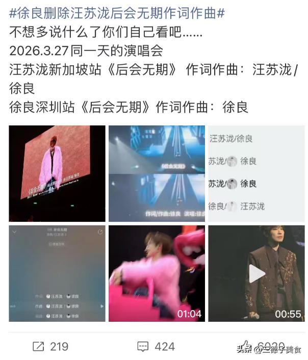 3月27日,有细心的网友发现,汪苏泷和徐良两人在同一天开演唱会,但有一首歌出现了小意外。