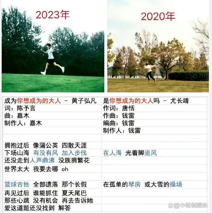 不久前,黄子弘凡发布新歌,原本是件高兴的事情,却被网友指出和尤长靖的作品有相似指出。不仅仅是歌名相似,连歌词也有相似之处。不过也有网友表示,不应该因为歌名相似就说抄袭,二人的歌曲曲风还是有很大差别的。