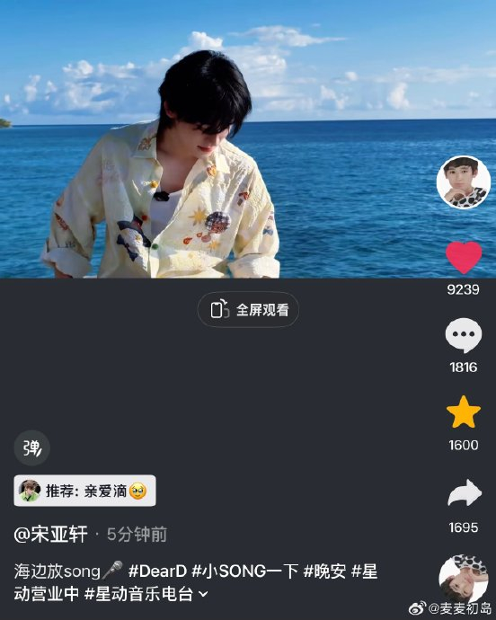 马尔代夫的海浪声中,宋亚轩以一段清澈的《DearD》清唱,将粉丝的期待化作一场与星辰大海共振的温柔履约。