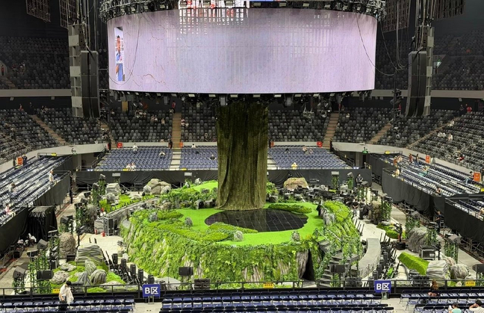 今晚首场深圳站,绿色小岛 树与草坪 清新浪漫~好想去现场~#单依纯[超话]#