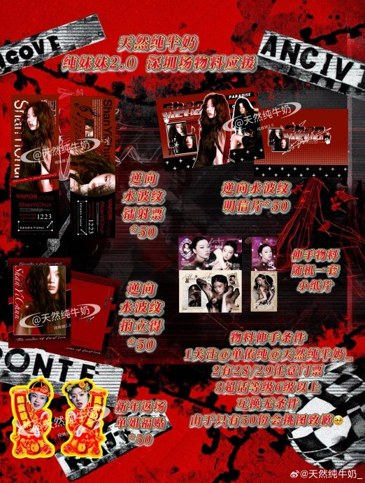 个人应援凸显细腻巧思。粉丝自发设计逆向水波纹系列周边,包括镭射票根、明信片与拍立得,融合单依纯歌曲《水纹》意象,通过超话等级验证实现限量互换;手工达人制作亚克力吉他拨片、拼豆挂件与猫耳吧唧徽章,将音乐符号转化为可触摸的信物。更有粉丝开发“新年福贴”“单姐猫猫”等萌系元素,在入场通道开启“以物换情”的社交仪式,成为联结陌生歌迷的情感纽带。