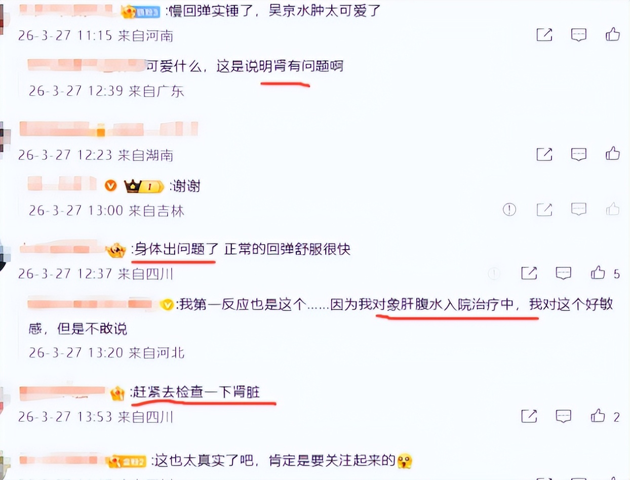 “这种在医学上叫做凹性水肿,如果存在这样的表现,请吴京先生一定要注意健康!”