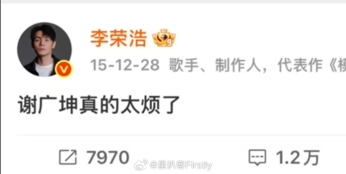 还得是广大网友,上一个让李荣浩这么生气的还是谢广坤