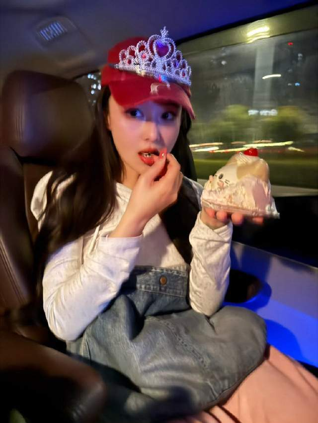 上面那张照片是淑女一枚,另外一张可就恢复其本来的面貌了,张馨予在车里,应该是收工回家吧。张馨予头戴红色棒球帽,手捧可爱“小猫蛋糕”,在车上已经忍不住开始吃起了小蛋糕,这被偷拍的模样,像极了偷吃“小猫蛋糕”的可爱张猫猫。棒球帽上还戴了一顶简易皇冠,这小公主的梦一直都存在呀!不过张馨予手里的“小猫蛋糕”真的相当可爱,相当抢镜呢。