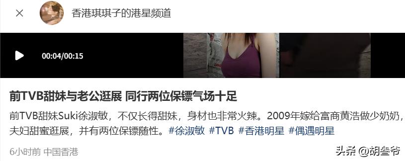 不少网友在短视频平台同步晒出偶遇画面,前TVB艺人徐淑敏(现名徐菁遥)和丈夫黄浩低调现身香港会展中心。