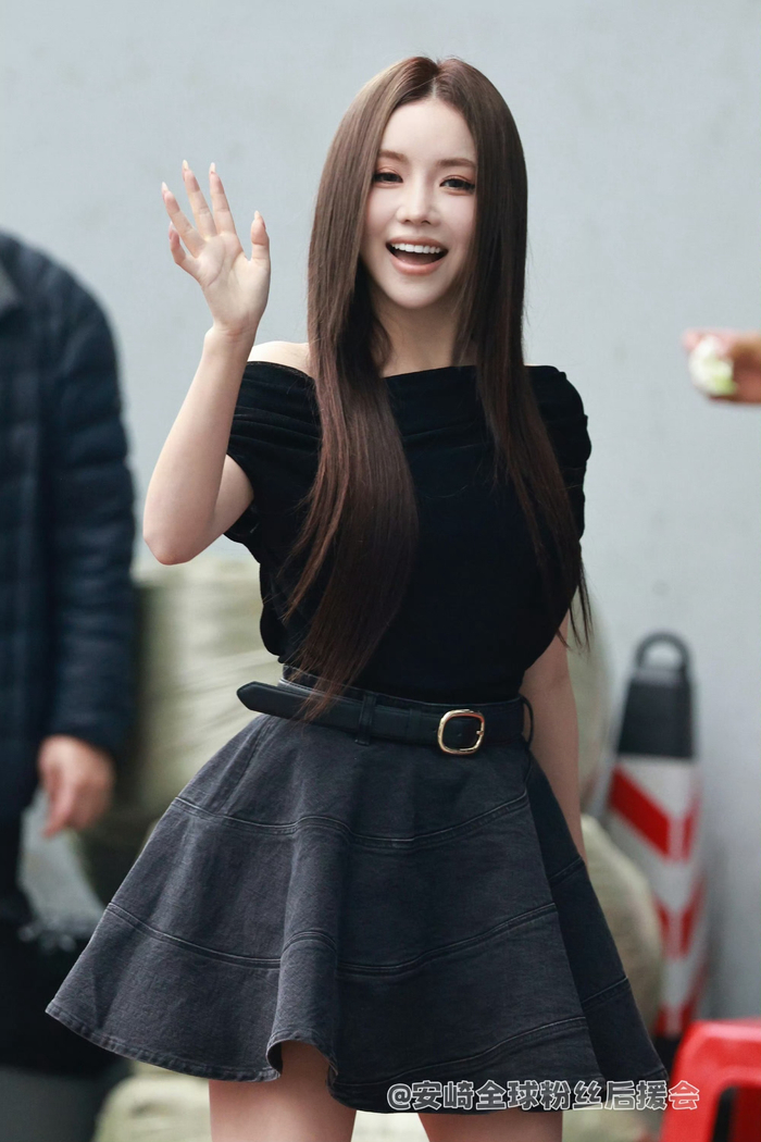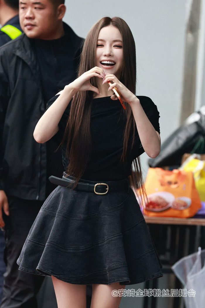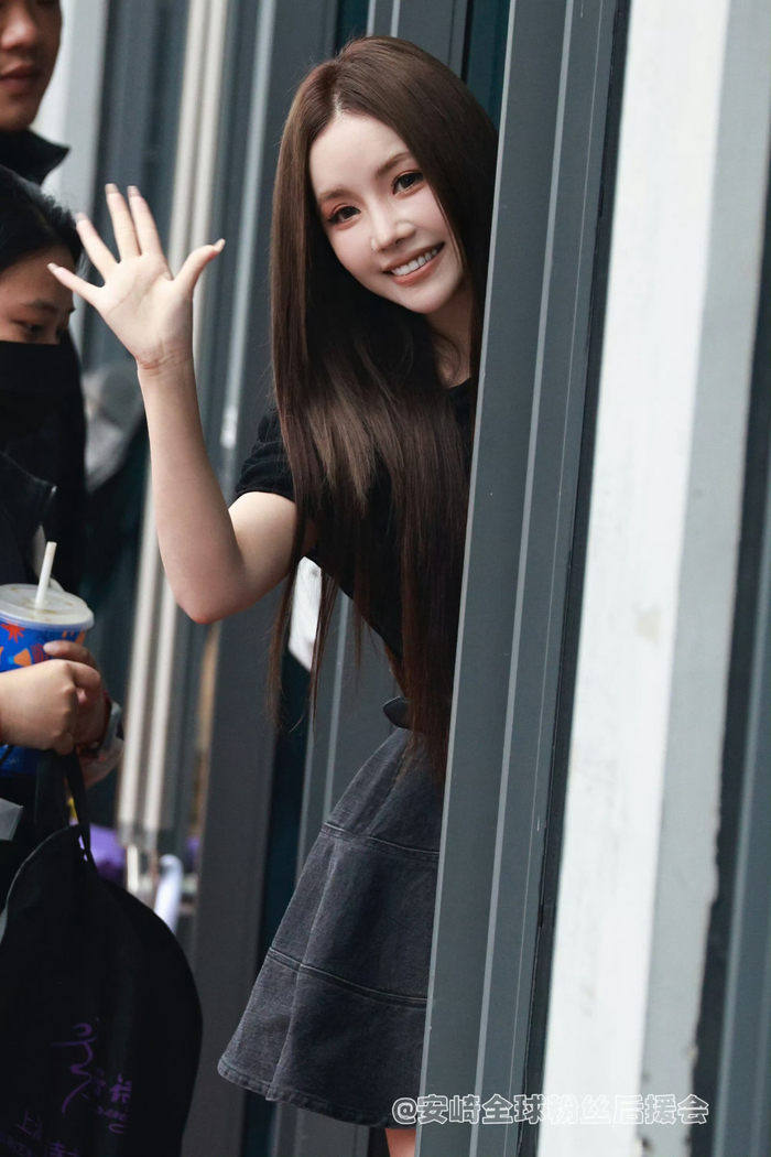 #安崎浪姐上班路透# 黑长直小黑裙上班啦上班啦,一直给粉丝打招呼比心太甜了吧,带着热爱乘风破浪吧,期待初舞台! #乘风2026#